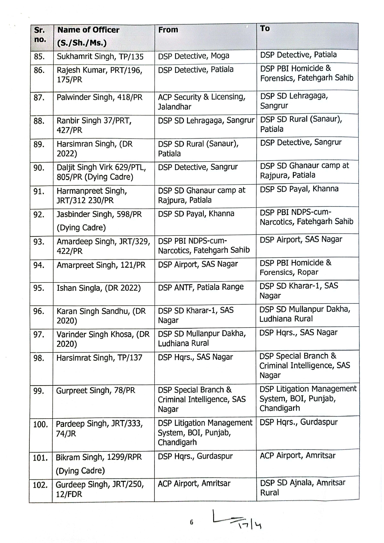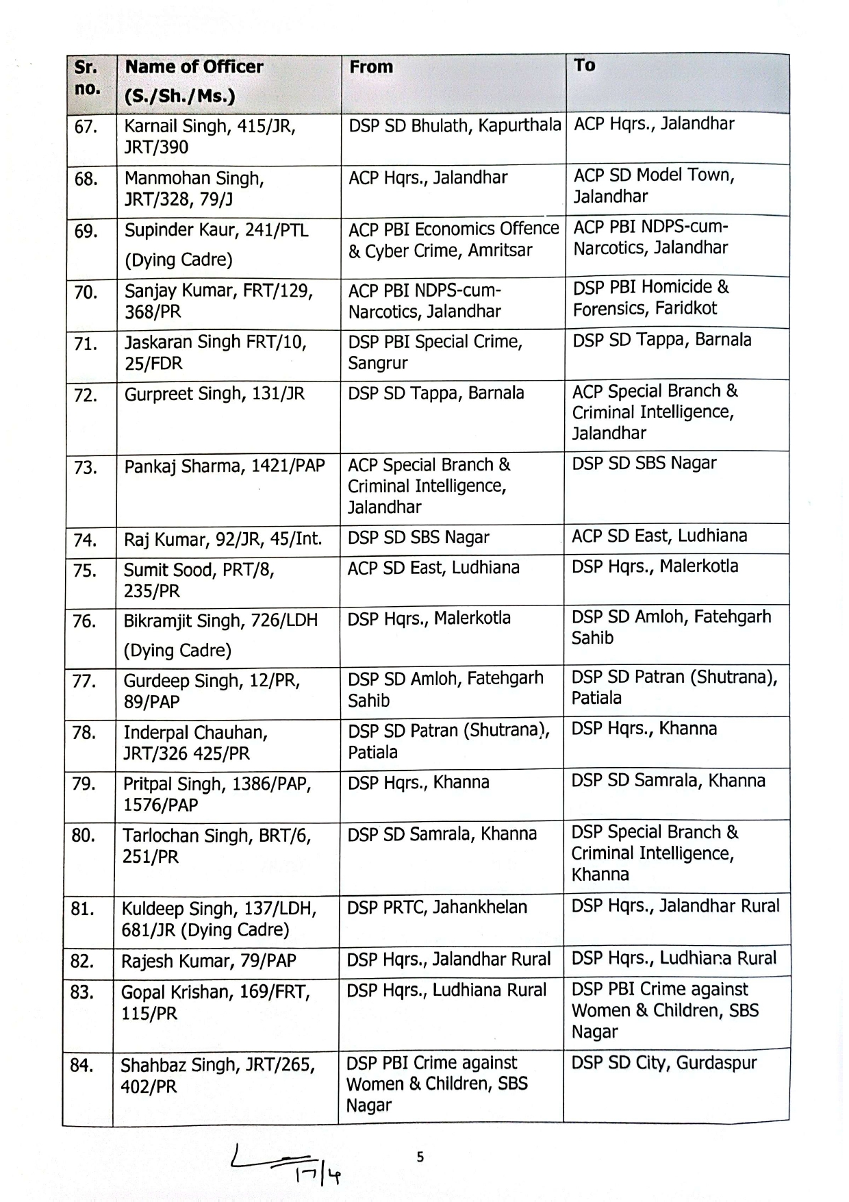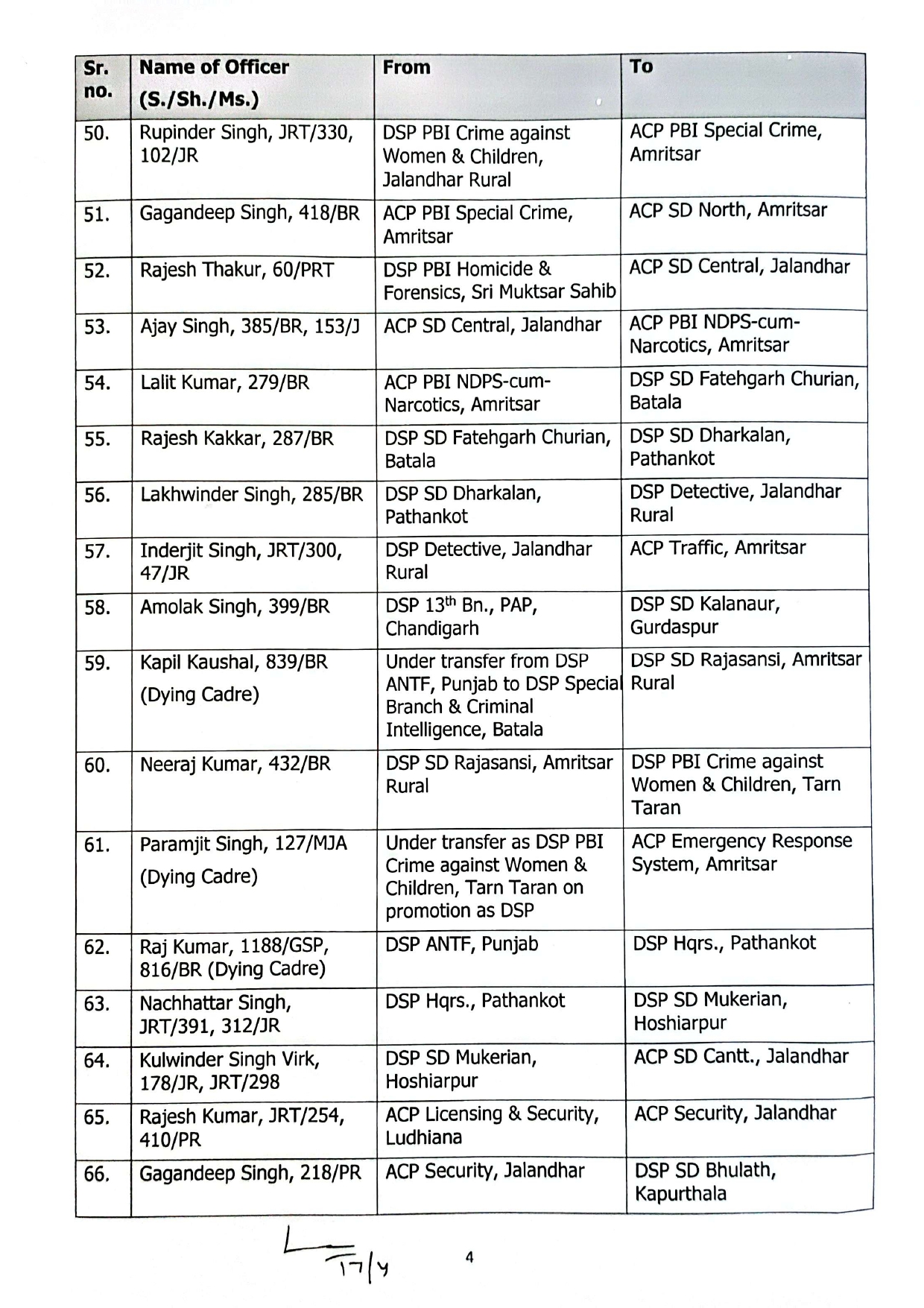 कमिश्नरेट जालंधर में बतौर एसीपी हेड क्वार्टर सेवाएं दे रहे एसीपी मनमोहन सिंह को एसीपी माडल टाऊन तैनात किया गया है, जबकि एसीपी सैंट्रल अजय का तबादला कर दिया है।
