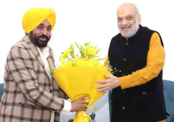 नई दिल्ली। पंजाब के मुख्यमंत्री भगवंत मान ने आज नई दिल्ली में केंद्रीय गृह मंत्री अमित शाह से मुलाकात की और पंजाब से संबंधित विभिन्न लंबित मुद्दों के जल्द और समयबद्ध समाधान के लिए विचार-विमर्श किया, जिनमें सीमावर्ती सुरक्षा प्रबंध, कृषि संकट, अंतरराज्यीय पानी संबंधी विवाद और केंद्र द्वारा ग्रामीण विकास फंड के बकाए की अदायगी में देरी शामिल है।