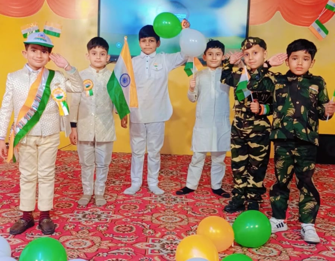 समारोह के दौरान विद्यार्थियों ने तिरंगे के रंगों से सजे ट्राई-फेस पेंटिंग्स बनाईं, जिनमें देशप्रेम की सुंदर अभिव्यक्ति देखने को मिली।