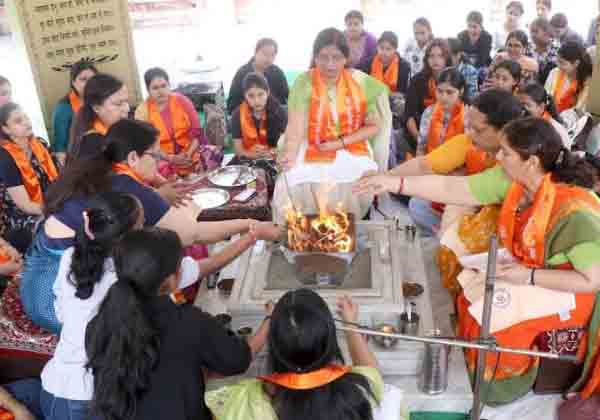 सर्वप्रथम परमपिता परमात्मा के चरणों में नतमस्तक होते हुए पवित्र मंत्रोच्चारण और वेदों के माध्यम से वातावरण को पवित्र बनाकर अग्नि में आहूतियां अर्पित कर सर्वमंगल की कामना की गई जिससे समस्त ओर शांति और सकारात्मकता का संचार किया गया।
