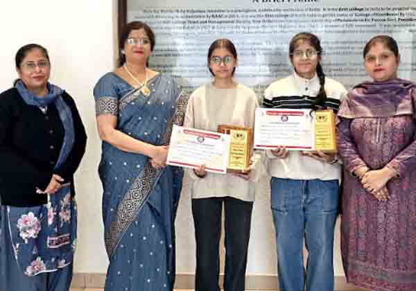 Chandigarh चंडीगढ़। हंसराज महिला महाविद्यालय के रेड रिब्बन क्लब व फाइन आर्ट्स विभाग की छात्राओं ने पंजाब स्टेट एड्स कंट्रोल सोसाइटी एवं यूथ वैलफेयर विभाग जालंधर द्वारा आयोजित राज्य स्तरीय प्रतियोगिता में ईनाम जीतकर कालेज का नाम रोशन किया है।