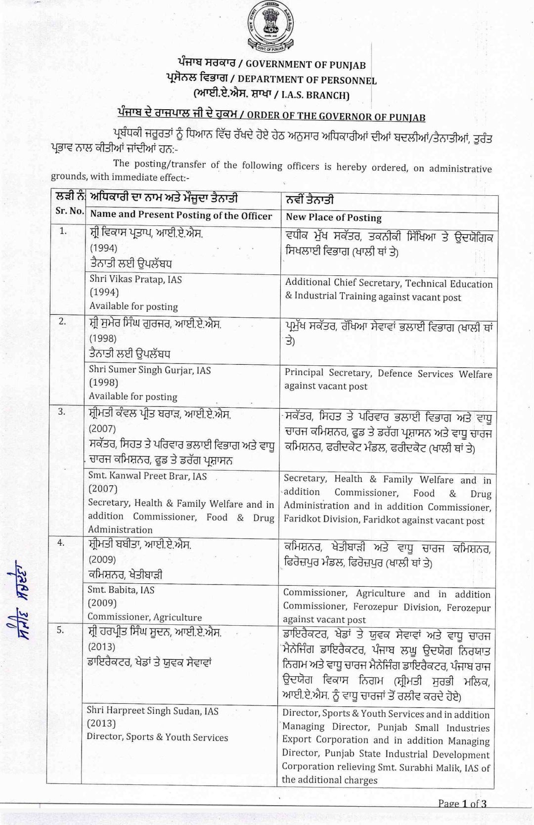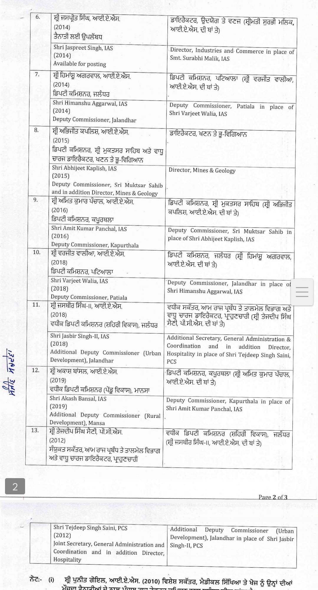 जालंधर। पंजाब में बड़ा प्रशासनिक फेरबदल हुआ है। पंजाब के जालंधर, कपूरथळा समेत 5 जिलों की डीसी ट्रांसफर हुए हैं। पढ़ें किन्हें मिले किस जिला की जिम्मेदारी…