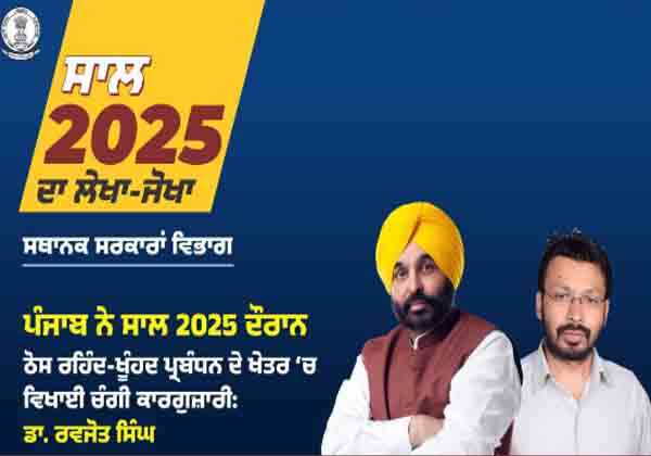 डॉ. रवजोत सिंह ने बताया कि स्थानीय सरकार विभाग द्वारा सेवाओं की डोर-स्टेप डिलीवरी सफलतापूर्वक शुरू की गई है, जिससे नागरिकों की सुविधा में उल्लेखनीय वृद्धि हुई है।