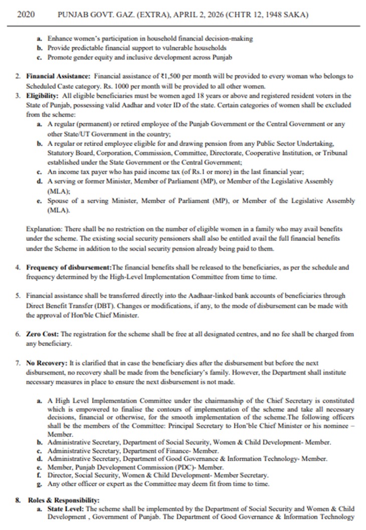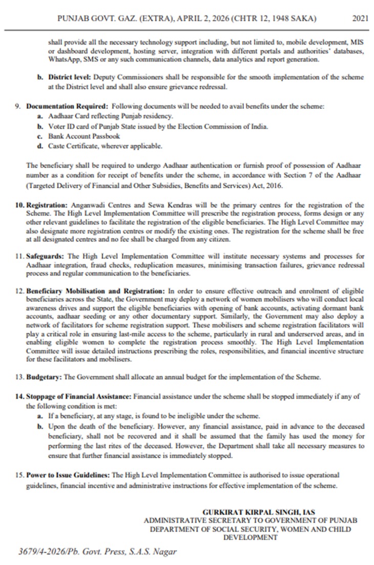 8 मार्च को बजट में योजना का ऐलान किया गया था। 13 अप्रैल से रजिस्ट्रेशन शुरू होगा। पंजाब का आधार कार्ड और वोटर कार्ड होना जरूरी है।
