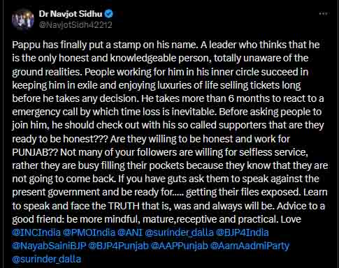 नवजोत कौर सिद्धू ने किया ट्वीट