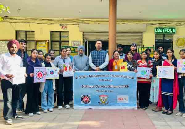 Jalandhar जालंधर। सेंट सोल्जर मैनेजमेंट एंड टेक्निकल इंस्टिट्यूट कपूरथला रोड में एनएसएस वॉलंटियर्स के लिए ट्यूबरकुलोसिस पर एक अवेयरनेस सेशन सफलतापूर्वक किया गया।