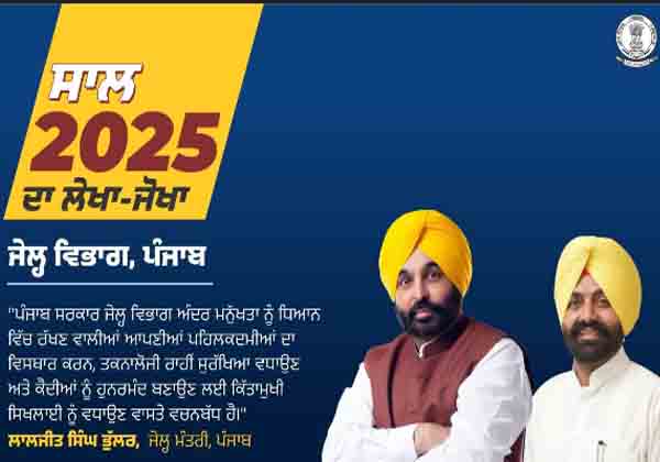 उन्होंने कहा कि चालू वर्ष के दौरान पंजाब की जेलों को स्वच्छ वातावरण से लेकर उच्च-तकनीकी सुरक्षा तक पुनर्परिभाषित किया गया है।